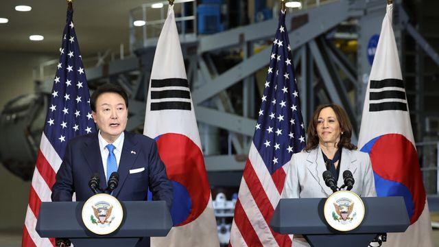 해리스 미국 부통령과 공동연설 하는 윤석열 대통령