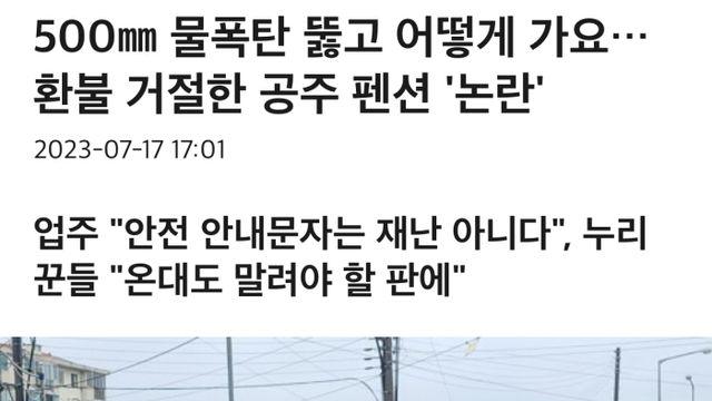 500㎜ 물폭탄 뚫고 어떻게 가요…환불 거절한 공주 펜션 논란