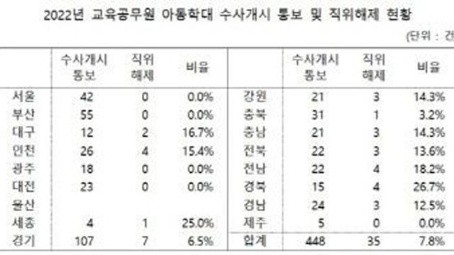 아동학대 신고땐 무조건 직위해제 … 지난해 교직원 448건중 35건 7.8만 해당