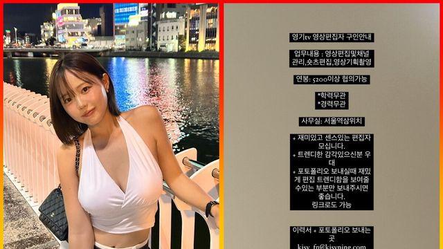 얼짱 출신 홍영기 유튜브 편집자 공고, 연봉 5200만 원 이상…